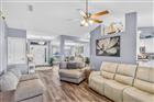 Links-Front Living: Fully Renovated & Move-In Ready on the 14th Fairway Welcome to the Village at Black Bear, a premier 18-hole golf course community offering the perfect blend of tranquility and convenience. This stunning 4-bedroom, 3-bathroom home has been meticulously renovated from top to bottom, offering a "brand-new" feel with mature, lush landscaping. The Interior: Step inside to an airy, open-concept floor plan featuring high ceilings, luxury vinyl flooring, and a fresh neutral palette. The heart of the home is a chef-inspired kitchen boasting new shaker cabinets, granite countertops, a custom backsplash, and stainless steel appliances. The layout is designed for modern living, featuring a formal dining room with elegant chair rails and crown molding, plus a casual breakfast bar for busy mornings. The Layout: The thoughtful split-bedroom floor plan ensures maximum privacy. The Owner’s Suite is a true retreat, featuring an extra-large bathroom with a soaking tub, a high-gloss easy-clean shower, and dual vanities. Two additional bedrooms share a convenient Jack-and-Jill bath, while the fourth bedroom is tucked away near the third bathroom—perfect for a private guest suite or home office. Key 2023 Upgrades: Structural: New Roof, New HVAC, New Water Heater. Exterior: New Lush Lawn & Irrigation, New Garage Door Opener, Fresh Exterior Paint. Interior: New Kitchen & Bathrooms (Granite Throughout), New LVP Flooring, Faux Wood Blinds, and Fresh Paint. The Lifestyle: Relax on your rear lanai and enjoy serene views of the 14th Fairway. Located just a minute from the clubhouse and restaurant, you are also perfectly positioned for easy commutes to Mount Dora, Eustis, Orlando, and the coast. Just bring your golf clubs and move right in! Furnishings are even available on separate bill of sale.