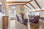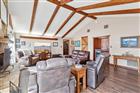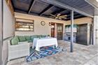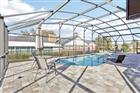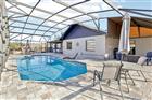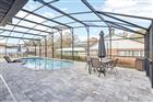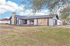 Architectural character and resort-style outdoor living come together on this beautifully maintained .43-acre corner lot located in a golf cart-friendly community with NO HOA. From the moment you arrive, the striking floor-to-ceiling stone chimney, bold architectural beams, and fresh exterior paint (2025) create standout curb appeal and give this home a custom feel you do not see every day. Inside, vaulted ceilings with exposed wood beams and a dramatic stone fireplace anchor the living space, while clerestory windows bring in natural light and enhance the open feel. Durable luxury vinyl plank flooring runs throughout the main living areas, offering the look of hardwood with easy maintenance and long-term durability. A built-in wet bar adds both function and personality, making the space ideal for entertaining. This is not a cookie cutter home. The architectural details and thoughtful layout set it apart from the typical floor plan. The split-bedroom design provides privacy, with an oversized primary suite offering generous closet space and an en-suite bath, while two additional bedrooms are positioned on the opposite side of the home near a full bath and laundry area. The kitchen features solid wood cabinetry, stainless steel appliances, a breakfast nook, and convenient access to the dining room for an easy flow. The backyard is a true highlight, featuring an impressive screened patio and pool enclosure with a fully pavered deck, multiple seating areas, and a covered lanai complete with ceiling fan and dedicated grilling space. The resurfaced gas-heated pool (2025) includes a new salt chlorination system (2025) and is connected to city gas for efficiency and convenience. Major updates include a new roof (2026), new pool screen enclosure (2026), exterior paint (2025), two AC units with one replaced (2017) and one replaced (2022), and a new drain field (2021). The oversized garage provides additional storage or workspace flexibility. With nearly half an acre, distinctive architectural detail, durable finishes, and extensive system upgrades, this home offers space, personality, and functionality in one complete package.