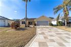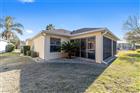 $10, 000 PRICE ADJUSTMENT!!!! BOND PAID! This beautifully maintained Banyan 3BR/2BA BLOCK & STUCCO home offers space, privacy, and an ideal layout in the desirable Village of WOODBURY in The Villages, FL. Situated on a great homesite with added backyard privacy, this property combines comfort and low-maintenance living. The painted driveway and walkway welcome you to a charming SCREENED FRONT PORCH, perfect for relaxing. Inside, the OPEN floor plan provides excellent flow for everyday living and entertaining. The smart SPLIT layout places the guest bedrooms on the opposite side of the home, and a stylish BARN DOOR for a private guest wing, ideal for visitors or a quiet workspace. All bedrooms include closets for ample storage. The main living areas feature CERAMIC TILE flooring throughout the living room, dining area, kitchen, laundry, and enclosed lanai. The kitchen offers excellent functionality with an island for gathering, generous counter space, and great flow into the living areas. BUILT-IN SPEAKERS throughout the home enhance the entertaining experience. The primary bedroom includes a large WALK-IN CLOSET, DUAL sinks, and a WALK-IN SHOWER. The guest bath features a tub and shower combination. The INDOOR laundry room provides extra cabinets for storage. Outdoor living shines with a LARGE ENCLOSED LANAI and a beautiful additional paver patio perfect for grilling and relaxing. Enjoy the EXTENDED GARAGE and added SCREEN for comfort and flexibility. ROOF (2022) HWH (2022) HVAC (2016). Conveniently located near golf, recreation centers, shopping, dining, medical services, and countless activities accessible by golf cart, this home delivers the full Villages lifestyle experience. Be sure to watch our YOUTUBE VIDEO tour of this wonderful home!(Link is under the picture above.) Schedule a personal tour today!