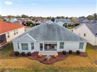 ~2020 ROOF~ ~ 2019 TRANE HVAC~ ~2021 HOT WATER HEATER~ ~120SF GLASS ENCLOSED LANAI~ Welcome to this beautifully maintained GRAND FICUS model in the highly desirable Village of VIRGINIA TRACE in The Villages! Situated on an offset lot, this block and stucco home has elegant iron entry gates designed for both style and safety. Step through FRENCH DOORS into the foyer with soaring HIGH CEILINGS, CERAMIC tile flooring, and a convenient COAT CLOSET. The spacious living room continues the airy feel with CERAMIC tile, HIGH ceilings, and a ceiling fan—perfect for relaxing or entertaining. The kitchen is thoughtfully designed with CERAMIC tile flooring, HI-DEF countertops, a stylish painted backsplash, recessed lighting, pantry, GAS cooking and convenient top roll-out shelf cabinetry. An eat-in area in the kitchen with HIGH VAULTED ceilings creates a bright and welcoming space for everyday dining. The primary suite offers carpeting, HIGH VAULTED ceilings, a ceiling fan, and a generous WALK-IN closet. The ensuite bath features CERAMIC tile flooring, a WALK-IN shower, linen closet, DOUBLE SINKS, HIGH laminate countertops, a vanity area, and abundant drawer storage. Guests will appreciate the comfortable secondary bedroom with carpet, WALK-IN closet, ceiling fan, and blinds. The nearby guest bath includes CERAMIC tile and a tiled tub/shower combination. A versatile den with HIGH ceilings, carpet, ceiling fan, and blinds is enclosed with double pocket doors—ideal for a home office, hobby room, or additional guest space. The INSIDE LAUNDRY CLOSET includes CERAMIC tile flooring, cabinetry, and GE washer with Amana dryer for added convenience. Relax and unwind in the GLASS-ENCLOSED LANAI featuring textured tile flooring, blinds, ceiling fan, sliders from the kitchen, and FRENCH DOORS from the living room—perfect for enjoying Florida living year-round. This inviting home features a 2-car garage with ample storage, attic stairs, and durable concrete flooring. This exceptional home combines comfort, functionality, and a prime location close to all that The Villages provides. You are a 5-minute golf cart ride to Lake Sumter Landing as well as the Virginia Trace Adult Pool & Rec Center. Also, it is close to shopping, dining and medical along CR466 and Hwy 27/441.