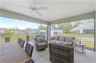 Discover refined Florida living in this beautifully crafted Designer Home located on a desirable corner lot in the Village of Newell. Built in 2023 and offering 1, 913 square feet of thoughtfully designed living space, this elegant residence features 3 bedrooms and 2 bathrooms, along with a 2-car garage and separate golf cart garage, perfectly suited for enjoying the Villages lifestyle. Inside, the home welcomes you with a spacious open-concept design where the living room, kitchen, and dining area flow seamlessly together, creating a bright and airy atmosphere ideal for both everyday living and entertaining. The two front guest bedrooms are thoughtfully positioned to provide privacy and comfort for visiting family and friends, sharing a well-appointed guest bathroom and creating a welcoming retreat for company. The spacious primary suite serves as a private retreat, highlighted by luxury vinyl plank flooring, a generous walk-in closet, dual vanities, a Roman shower, and a convenient linen closet, delivering both comfort and sophistication. Step outside to a large covered lanai and extended raised patio, offering the perfect setting to relax, entertain guests, or enjoy peaceful Florida evenings surrounded by refreshed landscaping and the added privacy of a corner homesite. The location places you just moments from the vibrant dining, shopping, and entertainment of Sawgrass Grove and the exciting new Eastport Town Square. Recreation opportunities abound nearby with convenient access to Franklin Recreation Center, Homestead Recreation Center, and the expansive Ezell Regional Recreation Complex. With all major systems—including roof, HVAC, appliances, and water heater—installed in 2023, this home offers modern peace of mind paired with elegant design and an exceptional location. Experience the perfect balance of comfort, style, and convenience in one of the newest and most sought-after areas of The Villages. Please check out the video tour too!