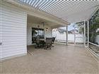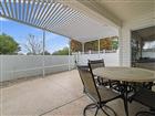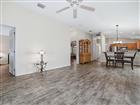 NO BOND! Check out this rare gem, 3 bedroom, 2.5 bath Courtyard Villa in the Villas of Morningview, Village of Calumet Grove with Nancy Lopez Golf Course view!! The Villa has been very well maintained and boasts so many features. Half bath, enclosed single vanity & cabinets in the laundry room is a major addition. Upgrades include: Vaulted ceilings, 6 panel doors w/lever handles, rocker electric switches, marble sills, wood look laminate flooring, dimmable eye ball lighting in kitchen, leaded glass front door has retractable screen, designed concrete in garage, lanai & front porch, ceiling fans in all rooms except baths, medicine cabinets & skylights in full baths, energy efficient tinted windows & sliding glass doors. The kitchen is a pleasure, offering many cabinets w/pull out shelves, double sinks w/disposal, breakfast bar (seats 4), newer stainless appliances, gas 4 burner range w/center grill, oven, microwave, refrigerator w/French doors, bottom drawer freezer w/ice maker, dishwasher and a closet pantry. Primary bedroom sliders open out to the huge screened lanai with roof over and pergola for shade. Sliders from the great room also open to the 25x17 screened lanai which has a view of the Nancy Lopez golf course. Yet, another set of sliding glass doors open from the dining area to the design concrete side patio. This private spot is perfect for outdoor grilling & socializing while enjoying the shade provided by the Pergola awning. The entire back yard is fenced for your pets. Low maintenance rock ground cover. 1.5 car garage will accommodate your golf cart, plus has built-in cabinet storage & workbench. HVAC & water heater are gas fuel, replaced around 2019-20, roof replaced 2019. All of this ALONG WITH awesome "The Villages" amenities!! Pool, golf course, restaurant within 5 minutes. Hospital, medical care, entertainment, shopping, tons of restaurants, are mostly a golf cart drive away! This is a beautiful, updated, ready-for-you home. Come See, Come Love, Come Buy!! Ps: furnishings are available :))