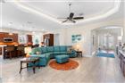 One or more photo(s) has been virtually staged. Rare Sarasota Designer model featuring an extraordinary 4-car garage measuring 29.9 x 40, a feature rarely found in The Villages and ideal for car enthusiasts, golf carts, storage, or a workshop. The home also includes a large bonus room (16.9 x 39.7) perfect for a game room, hobby space, studio, or additional living area. The driveway features a durable decorative concrete finish, while the garage flooring is epoxy coated for easy maintenance. Interior upgrades include quartz countertops in the kitchen and baths, tile backsplash, solid cherry cabinetry with soft-close doors and drawers, plantation shutters, tray ceilings, rounded drywall corners, and double-pane Low-E windows. All bedrooms feature custom California Closet systems for exceptional organization and storage. Enjoy a beautiful double water view from this well-appointed home. The property also conveys with the remainder of The Villages 10-year structural warranty, the remainder of the HVAC 10-year parts warranty, and a 30-year architectural shingle roof warranty, all transferable for nominal fees.