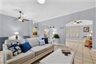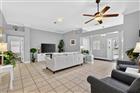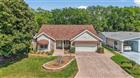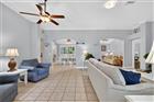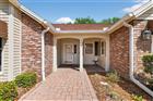 This beautiful 3/2 San Marino model is located on a private Cul-de Sac with the rear of the house overlooking a treed lot and a water canal that flows into the Mira Mesa Golf Course pond. The entrance of the home features a Brick front framed by Awnings, and a Brick paved driveway with and added Brick walkway leading to lovely peaceful picturesque backyard. The large garage has a remote screen, lots of cabinets, countertop with a sink , an acrylic painted floor, and pull down attic stairs to an above storage area. Entering the main entrance of the home reveals decorative columns with shelves, tile flooring and crown moldings. showcasing an Open floor plan with 10Ft. ceilings .Enjoy the large kitchen with stainless steel appliances next to a dining/ family room combo which leads to an enclosed lanai overlooking the serene yard. All interior fan lights have remote controls. A new roof was installed in 2023 which has lightning rods for extra protection. All gutters on home have gutter guards. Home is partially furnished and a 2008 Yamaha Gas 4 seat golf cart is included with sale of home. Come enjoy The Villages and all the amenities this beautiful community has to offer. Also No Bond !!! Schedule an appointment today to view this lovely home.