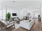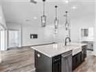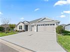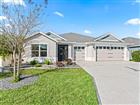 Experience refined Florida living in this exceptional Indigo Model Home, a stunning designer concrete block and stucco residence offering luxury finishes, thoughtful design, and remarkable privacy. Located in the sought-after Village of Hawkins within The Villages, this beautifully appointed 3-bedroom, 3-bath home with a 2-car plus golf cart garage is just minutes from shopping and dining. From the moment you arrive, the home’s striking curb appeal sets the tone, highlighted by a painted driveway and walkway and elevated circular stone landscaping beds that frame the property with style. A screened and covered front porch welcomes you into a bright foyer where elongated ceramic wood-look tile flooring flows through the main living areas, complemented by plush carpeting in the bedrooms. The open great room and dining area create an inviting space for both everyday living and entertaining. Double glass pocket sliding doors open completely to reveal the showstopping private, climate-controlled lanai, seamlessly blending indoor and outdoor living. The lanai also features electronic privacy shades and overlooks a fenced yard on two sides, offering both comfort and seclusion. At the heart of the home, the designer kitchen impresses with a large island with sink, gooseneck faucet, and elegant pendant lighting. Abundant soft-close cabinetry pairs beautifully with gorgeous quartz countertops and a tiled backsplash, while an upgraded stainless steel appliance package completes the space. The kitchen’s stylish gray cabinetry contrasts with the rich darker cabinetry of the elongated island, creating a sophisticated focal point. A walk-in pantry with added storage and a hidden laundry room with extra cabinetry enhance both convenience and functionality. The luxurious primary suite is a peaceful retreat featuring a Roman walk-in shower, dual vanities, and a large walk-in closet with custom built-ins for effortless organization. Two private guest suites provide exceptional comfort for family and visitors, each with its own full bathroom showcasing quartz countertops and upgraded framed mirrors. One guest bath features a tub/shower combination, while the other offers a walk-in shower, ensuring versatility for guests. Additional highlights include: • Elegant Tray Ceilings • Gas Utilities • Tankless Hot Water Heater • Smart-Home Readiness • Gutters and Downspouts Surrounding Entire Home • Spacious Laundry Room with Additional Cabinetry • Private Grilling Patio Perfect for Outdoor Entertaining. Ideally positioned just five minutes from shopping, dining, and everyday conveniences, this remarkable home combines luxury, privacy, and modern design in one of the area’s most desirable locations.