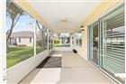 Welcome to this One Owner, Willow Designer Model, a beautifully maintained gas home that blends comfort, style, and peace of mind. This residence features a new roof 2025, a 2021 gas HVAC system, a gas water heater, attic blanket and added security with a termite bond, Ring security camera, and doorbell. The Bond is Paid. The attractive exterior faces east and showcases a concrete driveway and walkway, lush pine mulch landscaping, gutters, downspouts, and an irrigation system for easy maintenance. Step inside through the screened entry to a welcoming foyer adorned with elegant diagonal tile and a flush mount light. The spacious kitchen is a chef’s delight, boasting granite countertops, cabinetry with pullout drawers, and a convenient pass-through to the dining area. Enjoy casual meals in the bright breakfast nook with a bay window and formal gatherings in the vaulted dining room complete with a chandelier and serving ledge. The inviting living room features laminate flooring, vaulted ceilings, plantation shutters, and access to a screened lanai—perfect for relaxing or entertaining. Double Screen Doors on Lanai offers easy access and even space for Golf Cart entry. The lanai opens to a private backyard patio, offering even more space for outdoor enjoyment. Retreat to the owner’s primary suite, featuring dual windows, a walk-in closet with extra shelving, and a spacious bathroom with double sinks, granite countertops, a custom step-in tiled shower, and ample linen storage. This home features two additional bedrooms one of which, includes a custom built-in desk with shelving and cabinets. This front bedroom has been extended 5Ft for a relaxing office/den space. Additional highlights include an indoor laundry room with Roper washer and dryer, a two-car garage equipped with built-in cabinets, a workbench, and attic storage. Garage has been extended 2 Feet. Close to golf courses, pools and Recreation Centers.