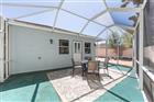 Turn the key and start enjoying Florida living in this beautifully updated, turnkey 2/2 Baja Courtyard Villa, positioned on a quiet dead-end street. Designed for easy living and entertaining, this home combines thoughtful upgrades, stylish finishes, and a low-maintenance lifestyle. Freshly painted inside and out. From the moment you arrive, the curb appeal stands out with concrete landscape edging, marble and pine stay-color mulch, gutters and downspouts, and a charming covered front porch. The property is designed for minimal upkeep with no grass. Step inside to find NEW luxury vinyl plank flooring flowing through the main living spaces, creating a warm and cohesive feel. The welcoming entry includes a closet, overhead lighting, and convenient keypad front-door access. The bright and stylish kitchen is both functional and inviting, featuring quartz countertops, a pantry closet, ss sink with gooseneck faucet and soap dispenser, new garbage disposal, and a window overlooking the side courtyard. A combination of recessed and flush lighting keeps the space bright. Appliances include a New Whirlpool glass-top range, mounted microwave, refrigerator, and dishwasher. The dining area shines with a chandelier and sliding doors leading to the private side courtyard, creating a seamless indoor-outdoor flow ideal for entertaining. The spacious living room serves as the heart of the home, complete with a ceiling fan, a window to the side yard, mounted TV with sound bar, and a beautiful arched entry leading to the Florida room. The Florida room/office/den offers flexible living space—perfect for working from home, relaxing, or hosting guests. With tile flooring, a ceiling fan, mounted TV, and windows overlooking the backyard courtyard, this room feels bright and inviting while maintaining privacy. A door leads directly to the outdoor birdcage, and sliding doors connect to the primary suite. The guest wing includes a hallway linen closet, a comfortable guest bedroom with ceiling fan, front-facing window, and built-in closet organizer. The guest bath features quartz countertops, comfort-height toilet, vanity lighting, and a shower/tub combination with an upgraded Delta shower head. The primary suite is a relaxing retreat with a ceiling fan, backyard window, and sliding doors leading to the Florida room. The walk-in closet includes a custom built-in organizer, while the en-suite bath offers a vanity with medicine cabinet, comfort-height toilet, and a step-in shower and upgraded showerhead. Step outside and discover one of the home’s most appealing features—the screened birdcage patio set on an expanded concrete courtyard. This space is perfect for outdoor dining, relaxing evenings, or entertaining friends while enjoying the Florida breeze. Decorative mulch and solar disc lighting add both charm and ambiance. The garage offers space for a golf-cart parking, attic access, wire shelving, irrigation controls, a window to the front yard, and a new Genie garage door opener. Major updates provide peace of mind, including a roof replaced in 2014, HVAC system installed in 2019, upgraded Honeywell thermostat, a brand-new water heater in 2024, All New Lighting Fixtures, All New Plumbing Fixtures, New Smoke Detectors, and Bond is Paid!!! With its turnkey convenience, stylish updates, private courtyard living, and low-maintenance outdoor spaces, this charming villa is the perfect place to relax, entertain, and enjoy the Florida lifestyle from day one.
