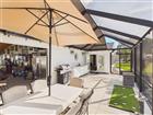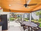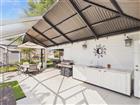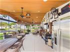 Your private outdoor oasis awaits—Over 900 sqare feet of outdoor living space (not included in the heated square feet). Peaceful, spacious, and perfect for entertaining. Outdoor sink with cabinetry and large serving counter under roof. Truly a must-see! Step inside this redesigned Santa Rosa and prepare to be impressed by the stylish upgrades throughout. The open-concept great room creates a bright, welcoming space, while the kitchen shines with a large island, granite and corian countertops, solar light, stainless steel appliances, and custom cabinetry with under-cabinet lighting. Featuring 2 bedrooms with walk-in closets and 2 bathrooms, this home offers a split floor plan for added privacy, complete with a soft-closing barn door for guests. You’ll love the high ceilings (no popcorn), bamboo engineered flooring (no carpet), and the convenient interior laundry room with a hidden pantry. The extended garage adds valuable storage space. Recent updates include: Windows (2020), HVAC (2017), Roof (2023), Hot Water Heater (12/2018), plus a water purification system. (Golf carts, washer and dryer do not convey).