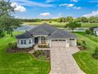 Modern LUXURY is Redefined in this Modified WILLIAMSBURG Premier located in the COVETED Bridgeport at Lake Sumter Landing. Every change and upgrade was thoughtfully curated to leave nothing for the NEW OWNERS to do but unpack and start enjoying the lifestyle they've worked for. This OVERSIZED PREMIER HOMESITE has room to expand on both sides and behind. Situated on #1 RILEY GROVE CHAMPIONSHIP COURSE (Arnold Palmer Country Club) you have Panoramic views of the Tee Box, Green and Water. The Curb Appeal upon arriving is CLEAN lines with refreshed Landscaping, New Exterior LIGHT Fixtures, Pavered Drive and Walkway, New Haas Insulated Garage Doors (w/quiet operating system, remote camera/access capability), PROVIA TRIPLE paned Front Door along with NEW WINDOWS(transferable warranty). WOOD FLOORING elevates the home upon entry, and it only gets better. The kitchen is a dream with new cabinetry to the ceilings, BOSCH appliances (except for Gas stove which is KitchenAid), Range Hood, Island, QUARTZ counters that have been lowered to enhance the view, Subway Tile Backsplash, Oversized sink, BRONDELL 3 Stage Water Filtration Stystem and Coffee Bar/Wine Refrigerator in the breakfast nook. The open-concept layout flows beautifully, creating an ideal setting for hosting and everyday living. The PRIMARY SUITE serves as a true sanctuary. The spa-inspired primary bath is nothing short of exceptional with an oversized walk-in shower w multiple shower fixtures, dual vanities, cabinetry tower and illuminated mirrors. With the removal of the garden tub an additional walk-in closet was added, still having 2 CUSTOM Closets in the Primary Bedroom. The Guest Quarters have a sliding pocket door for privacy with 2 Bedrooms and Updated Bath with DUAL SINKS. The Front Guest room has a Murphy bed (no closet) while the back guest room has direct access to the 2nd Bathroom. The Oversized Lanai has 3 remote privacy screens, a beautifully painted wood, tongue and groove ceiling, and enough room to host family gatherings, club or neighborhood parties. On chilly nights relax around the Firepit and watch the Sunset. The Garage has an epoxied floor, Storage Cabinets & work area, extra refrigerator and GOLF CAR GARAGE has room for 2 tandem golf cars. This ONE-OF-A-KIND home has plantation shutters throughout, new lighting, rounded corners, 5 1/4" Baseboards, Chair railing and so much more. NEW ROOF COMING, HVAC 2019, BOND BALANCE $13, 859.40