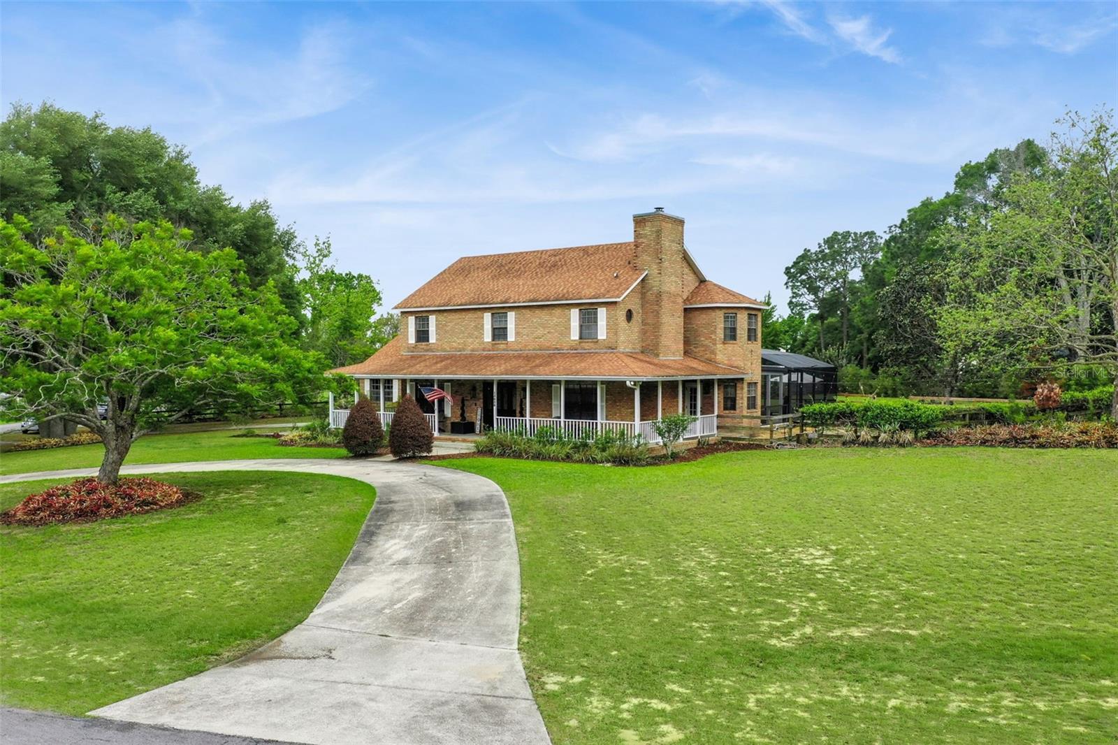 Welcome to your new dream home! Set on nearly a full acre, this stunning 4 bedroom, 3 bathroom home offers the perfect blend of privacy, functionality, and elevated design. Positioned on a spacious corner lot, the expansive U-shaped driveway and beautifully landscaped front yard create a grand and welcoming first impression. Inside, the home opens to thoughtfully designed living spaces, including a formal living room ideal for hosting and a cozy family room anchored by a charming brick fireplace, perfect for relaxed evenings at home. The family room flows seamlessly into the kitchen, where crown-molded cabinetry, generous counter space, and a stainless steel range with a statement range hood over the island create a space that’s both stylish and highly functional. A bright dinette area set within a bay window overlooks the backyard, offering the perfect spot to enjoy meals with a view. At the heart of the home, the dining room features eye-catching barn doors and connects effortlessly to the kitchen, making entertaining feel natural and easy. A full bathroom downstairs adds convenience for guests. Upstairs, all bedrooms are privately tucked away for optimal privacy. The primary suite is a true retreat, complete with a bay window, barn door accents, a spacious closet, and a beautifully appointed en suite bath featuring dual sinks, a large walk-in shower, and a rain shower head for a spa-like experience. Additional bedrooms are generously sized with plenty of natural light and storage, ensuring comfort for everyone. Step outside and discover your own private oasis! The screened-in lanai opens to a resort-style pool complete with a sun shelf, making it perfect for soaking up the Florida sunshine. A covered patio provides the ideal setting for al fresco dining, weekend barbecues, or simply unwinding poolside. The expansive backyard offers endless space for four legged friend, play, or future possibilities. Located just minutes from the renowned golf courses of Bella Collina and the charm of downtown Montverde, this home also places you near Lake Apopka, Lake Minneola, and an abundance of nature trails and parks so you can enjoy natural beauty close to home. This home lets you enjoy the peace of country living with the convenience of having everything close by. This is the lifestyle you’ve been waiting for! Don't miss out on this unique opportunity, schedule your private showing TODAY!!!