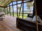 Under contract-accepting backup offers. Living on Lake Time! This beautifully remodeled 3 bedroom, 2 bath, 2 story lake home sits on a full acre, offering panoramic views of Little Orange Lake. The primary bedroom and bath are conveniently located on the main floor, while the second-story screened lanai spanning 416 sq. ft. provides breathtaking lake views. Imagine relaxing on the oversized swing, taking in the lake breeze from your perch above. Completely updated in 2023, this home features a new roof, windows, sliders, custom blinds, and fresh interior/exterior paint including refinished kitchen cabinets and new countertops. Both bathrooms have been fully renovated, and the 2nd-floor laundry comes equipped with new cabinets. Additional highlights include updated light fixtures, hardware, and restored cedar siding complemented by Hardie board plank. The reinforced dock and fully functional boat lift make lake access easy, while the party lights set the mood for evening gatherings. The backyard boasts a 30-foot wide wood deck, new fans, lush landscaping with fruit-bearing trees, and a fenced yard. Two powered sheds offer plenty of workspace and storage. Enjoy excellent fishing, kayaking, and unforgettable sunrises from your lakefront oasis. A truly serene retreat. Excellent investment opportunity for Lakefront vacations with Airbnb. This property stays active with great reviews with airbnb! Make this your next get away!!!