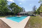 Under contract-accepting backup offers. One or more photo(s) has been virtually staged. Short Sale. Welcome to this delightful 3-bedroom, 2-bathroom home with a versatile den. Situated in a prime SE Ocala location near shopping, dining, and the YMCA, this home has features you'll love! No HOA! Enjoy peace of mind with a newer roof (2021), HVAC (2022), and water heater (2015). Step onto the inviting covered front porch and into the open living area, where laminate flooring flows through the main spaces and cozy carpet warms the bedrooms. The kitchen is perfect for cooking and entertaining, with ample counter space, a breakfast bar, and easy access to the living and dining areas. Sliding glass doors lead to a tiled screened back porch overlooking an EXPANSIVE inground pool, perfect for relaxing or entertaining guests. The master suite features a double closet and a private bathroom with a large vanity and a beautifully tiled shower accented by decorative glass doors. Two additional guest bedrooms, a full guest bath, and a huge inside laundry room, including washer and dryer, provide plenty of space and functionality. The den offers a great office or flex room space, complete with a stylish decorative wood accent wall. Enjoy the fully fenced backyard with privacy hedges, an open patio ideal for grilling, a storage shed, and additional parking—perfect for your boat! The garage has been converted into a bonus room with heat and air and a separate storage. It retains its working door, make it ideal as a tool shed, workshop, or motorcycle storage. The long driveway adds even more parking options. Make an appointment today!