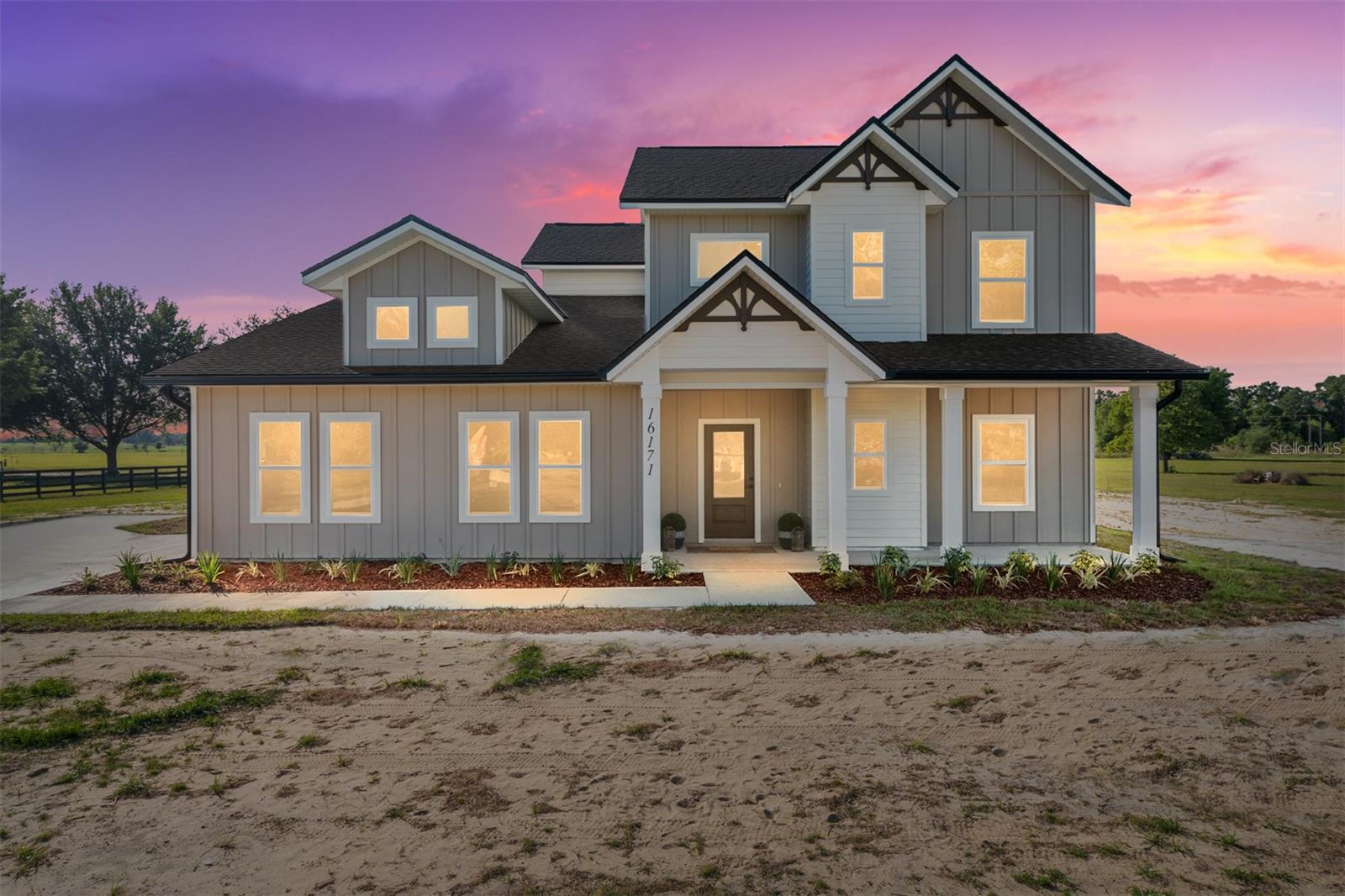 Professional photos coming soon. This model is apart of the 2026 Spring Parade of Homes. Coming April 2026 on a private 2.5-acre homesite in picturesque Tillman Acres, the Ashland by OLO Builders delivers 2, 447 sq. ft. of bright, open-concept living with a soaring two-story foyer, 9-ft ceilings, and a side-entry 2-car garage. A window-lined great room flows to the chef’s kitchen with island, dining bump-out, walk-in pantry, wood cabinetry with soft-close drawers, granite countertops, built-in oven and microwave, electric cooktop, French-door refrigerator, and range hood—plus sliding doors to the open porch. Everyday conveniences include a drop-zone/mudroom, dedicated laundry, and a guest half bath. The main-level primary suite is wrapped in natural light and features a large walk-in closet and spa bath with separate tub and shower, private water closet, and double vanity. Upstairs, a loft/second living area serves three generous bedrooms, a full bath, and a storage closet housing the second heat pump. Thoughtful finishes emphasize comfort and efficiency: durable composite siding with weather wrap, blown-in insulation in exterior walls and ceiling, double-insulated grid-pattern windows, two HVAC systems with heat pumps, wood-laminate main floors, and finished landscaping. Minutes from Historic Downtown High Springs, the Santa Fe River, and the area’s famed springs—Ginnie, Poe, and Blue—this new build blends acreage, craftsmanship, and outdoor adventure in one exceptional address. All photos are representations of a completed home and do not represent the finishes, colors, and selections when completed.