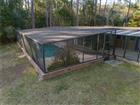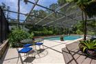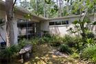Some photos have been virtually staged. A rare, single-story Mid-Century Modern pool home on an acre in NW Gainesville's Masonwood neighborhood. Built in 1964 and designed by Alfred Browning Parker, known as the Frank Lloyd Wright of Miami, this home seamlessly combines indoor and outdoor living. Modern design combines with a mix of natural materials including Ocala block, concrete, terrazzo and glass. The large open spaces are full of natural light and have views of the private courtyards and gardens, providing shade, privacy and a connection to the outdoors. The gated entry courtyard has a waterfall flowing into the koi pond and a covered walkway to the large double entry doors. Walls of glass, skylights and custom light fixtures fill the living space with light. The large multi-use living room incorporates space for dining, music, an office and conversation areas, all with views of the garden. To the left of the entry are two bedrooms and a guest bathroom. The first bedroom has an entire wall of sliding glass doors that opens to a second private courtyard. The guest bathroom has a step down Roman tub and plenty of storage with an adjacent linen closet. The second bedroom is currently configured as a den with a closet, bookshelf, fireplace and large sliding glass door. The front wall of the Living Room has updated double paned windows, like the rest of the home. It also has glass blocks that create a very unique pattern of light in the Ocala Block wall. To the right of the foyer is a casual dining area with sliding glass doors to the rear covered porch. Around the corner is the updated Kitchen with a built-in pantry, center island and solid wood 42 inch cabinetry, Quartz countertops and stainless steel appliances. There are two large windows overlooking the rear porch and custom lighting throughout. The home is well loved and maintained. New HVAC 2024. Water Heater 2025. Roof 2024. Across from the Kitchen is the laundry room which may be the biggest in town. It comes with a washer and dryer and lots of additional cabinets for storage. Off the laundry room is a three car, rear entry garage. Each bay has a separate door and the oversized space includes a workbench and storage. Open to the kitchen is the family room with many windows and access to the rear porch and a courtyard off the laundry room/garage. The rear porch is covered, screened and provides outdoor entertaining space. The pool and spa are saltwater. Continuing around the corner is the Primary Suite with walk-in closet, en suite bathroom and large bedroom with a wall of sliding glass doors overlooking the deck and pool. The Primary Bathroom has double sink vanity, updated fixtures and large shower. Past the Primary Suite is a large 4th Bedroom or second en suite Master Bedroom. This space has a large bedroom, office/nursery or flex space with sliding glass doors to the pool area and spa, a private exterior entrance and the en suite bathroom with water closet, tub/shower and solid wood vanity. Masonwood is located 1 mile north of the University of Florida. It is biking distance to Westside Park, Loblolly Woods trails and boardwalks and the 300 Tennis Club. Perfect for quiet walks, it is not on a busy through street. Less than a 5 minute drive to Millhopper Publix, Fresh Market, shops and area restaurants. The home sits on a 1 acre, low maintenance lot. A shed provides additional storage. Zoned for Littlewood Elementary, Westwood Middle and Gainesville High Schools. No HOA.