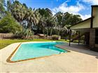 This 3, 473 sq ft, two-story brick and stucco home offers four bedrooms, four baths, nestled at the end of a cul-de-sac. Situated on an expansive lot, the property backs up to the Starke golf course. Enter the front door, to the foyer opening up to a spacious main floor living room, dining room, and a chef's kitchen. The kitchen is equipped with beautiful cabinetry, granite countertops, a microwave, oven, separate cook-top, and a convenient breakfast bar for quick meals and entertaining. Beyond the main living areas, an additional room serves as a den, playroom, or game room, perfect for gatherings or relaxation. Off this space is a second owner's suite featuring a full bath with both a tub and shower, adding a retreat ideal for guests or multi-generational living. A beautiful air-conditioned Florida room offers ample natural light, with vaulted ceiling, and a fourth bath. The perfect place to entertain family and friends as they overlook the swimming pool and fenced backyard.