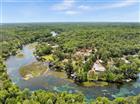 One or more photo(s) has been virtually staged. Properties like this do not come to market. They are passed down. Set on nearly 4 acres with 200 feet of pristine Rainbow River frontage, this is one of the largest and most significant privately held lots on the entire river. Located at the widest section just upriver from KP Hole, the property features its own private dive spring right off the backyard, gushing crystal-clear water year-round. Across the river sits 1, 459 acres of preserved state park land, ensuring your view will never be anything but trees, wildlife, and water. The existing 3, 200-square-foot residence is packed with 1974 character and massive potential. It features a sunken living room with vaulted ceilings, a massive kitchen with a step-down utility room ready for expansion, and four bedrooms split between the floors. Upstairs, a spectacular primary suite is reached via a winding spiral staircase and features a private porch and a two-story wall of windows framing the river view. Jack-and-jill bathrooms serve both levels, plus a convenient half-bath accessible from the outside for river days. Currently operating as a highly successful vacation rental that sleeps up to 20, the property is being sold fully furnished (furnishings negotiable). But the real value here is the canvas. The high, dry land sits outside the 100-year floodplain and carries two addresses on a single nearly 4-acre parcel. There is room to expand the current footprint, build an entirely new secondary residence, or execute a visionary gut renovation to create the ultimate luxury primary home. A new roof was installed in 2024. The property also retains a grandfathered dock footprint on the river, an increasingly rare asset. This is not just a house. It is a legacy holding on one of Florida's most beautiful natural waterways.