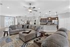One or more photo(s) has been virtually staged. Welcome to this move-in ready home located in the gated Treymont community of South Lakeland. Built in 2022 by Highland Homes, this popular Willow II model offers over 2, 600 square feet of beautifully designed living space with 5 bedrooms and 3 full bathrooms—perfect for a large family, guests, or flexible work-from-home living. Recent improvements include new light fixtures, a newly installed sidewalk, and refreshed landscaping that enhance the home's curb appeal. Beautiful double leaded-glass entry doors open to a spacious foyer and inviting open-concept great room floor plan, ideal for entertaining and everyday living. The home features upgraded flooring and finishes throughout, offering a polished look far beyond builder-grade. The oversized kitchen is truly the heart of the home, showcasing a massive butterfly island, granite countertops, stainless steel appliances, and gorgeous cabinetry with crown molding. Whether you love baking, hosting gatherings, or simply need space for busy family life, this kitchen delivers. A cozy café/breakfast area provides the perfect spot for casual dining, morning coffee, or your favorite espresso setup, while a formal dining space remains available just off the kitchen. A versatile den area—currently set up as a home gym, could easily serve as a playroom, media room, or teen hangout space. The spacious primary suite comfortably accommodates a California king bed and additional furniture, and the en suite bath features a soaking tub, glass-enclosed tiled shower, dual granite vanities, a private water closet, and a large walk-in closet with additional linen storage. Four additional bedrooms and two more full bathrooms provide excellent flexibility. Bedroom two is currently used as a “man cave” and would make a fantastic private office. Bedrooms three and four share convenient access to a hall bath, while bedroom five is privately located toward the rear of the home and is currently used as an in-law suite with easy access to the third bath and kitchen area. Outdoor living is just as enjoyable, with a screened rear lanai featuring a large cooling fan and roll-down shades—perfect for grilling, relaxing, or gathering with friends and family. The vinyl-fenced backyard is pool-ready and offers plenty of room for pets, play, or future outdoor additions, with direct access to the third bathroom for added convenience. Additional highlights include a three-car garage with pull-down ladder access to a partially floored attic for extra storage. Ideally located just minutes from shopping, restaurants, medical offices, and the Polk Parkway, this beautiful home combines space, comfort, and convenience in one exceptional property. Schedule your private showing today!
