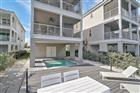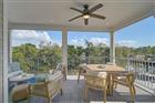 Stunning never-lived-in model home on one of the largest lots in Hunters Point, offering excellent privacy and expanded waterfront views just minutes from Anna Maria Island. Features include a heated finite-edge pool, deeded private dock suitable for approximately 25 ft vessels, and a three-stop elevator. The home is elevated 16 ft. According to the seller, the 2024 coastal water event did not impact the home, with water reported only reaching the top of the dock. Designed for high-efficiency living with PGT impact windows, enhanced insulation, solar power with Sonnen battery storage, multi-zone HVAC, tankless water heater, irrigation system, smart locks, and home automation. The main level features a bright open layout with wide-plank flooring, coffered and beadboard ceilings, plantation shutters, surround-sound wiring, and a quartz kitchen with shaker cabinets, stainless steel appliances, and a large island. Covered terraces extend indoor-outdoor living. The upper level includes a spacious primary suite with screened porch overlooking the canal and pool, a walk-in closet, and a bath with dual vanities and heated flooring. Two guest rooms—one with a screened porch—share a Jack-and-Jill bath. A full laundry room completes the upper level. Additional features include a two-car garage with epoxy flooring, outdoor lighting, irrigation, and smart-home connectivity. Multiple covered and screened terraces offer comfortable outdoor spaces throughout the home. Hunters Point is a gated, golf-cart-friendly community with private roads and a forthcoming clubhouse and resort-style pool. HOA dues of $550 per month include cable, internet, pest control, grounds maintenance, and irrigation water. Convenient to marinas, dining, nature parks, Cortez Village, and the beaches of Anna Maria Island. Furniture may be available separately.