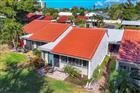Hurry to this villa-style condo in a 13-acre Gulf front community. Enjoy a fabulous lifestyle knowing this condo was not damaged by hurricanes. Beautifully updated with white cabinets and stone counters in kitchen and bathrooms. The high vaulted ceilings let in tremendous amounts of light that we crave in the winter months. You deserve to own this Aldea Mar, "Village by the Sea, " home. Bring your 30 lb pet because this community is pet friendly. You will have your private carport attached to your unit containing a large storage area with washer and dryer. There are 2 pavered outdoor living areas, one overlooks the putting green and lush grassy landscape. There is also a large community pool, clubhouse and shuffleboard court. The rental policy is a 30-day minimum, up to 4 times a year.