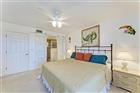 Penthouse unit featuring soaring ceilings and sweeping views of the golf course and lake. This charming 2-bedroom, 2-bathroom condo is offered fully turnkey and furnished, making it move-in ready. Recent updates include a new roof on the building, fresh exterior paint, and newer tile flooring throughout. Light and bright, the condo boasts large sliding glass doors that open to an oversized lanai—perfect for relaxing, entertaining, and taking in the beautiful surroundings that make The Plantation Golf & Country Club so special. Both bedrooms feature en-suite bathrooms and are spacious enough to comfortably accommodate king-size beds. The primary suite includes an updated shower, new flooring, and a very large walk-in closet ideal for storage. A secondary closet houses the washer and dryer for added convenience. Voluminous ceilings enhance the appeal of this top-floor unit, and the building is equipped with an elevator. Located directly across from the unit is a residents-only pool and clubhouse offering frequent social activities, including water aerobics and card games. Social or golf memberships are available separately. Storage closet inside assigned carport. Plenty of guest parking, as well. One covered carport for the unit.