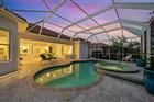Low-maintenance, country club home with a private setting! Over 3, 000 square feet of living area, including three bedrooms plus office, three and a half baths and an oversized garage with rear golf cart entrance. The leaded double doors open to the grand living room and dining room with high tray ceiling, moldings and a built-in wet bar. Bright and airy as you gaze through the 10-foot vanishing pocket sliders to the secluded travertine lanai, pool/spa area and a greenbelt view with no homes in sight. The beautiful kitchen has everything you could want, including an island with granite countertop, custom lighting, gas range, built-in ovens and a breakfast nook with aquarium windows and wide-open views. The family/kitchen room allows for even more space for family and friends. Beyond the family room is the conservatory/office with plenty of natural light and more views. The enlarged primary suite includes another large aquarium window, walk-in closets, tray ceilings and a private door to the pool and Jacuzzi. The primary bath has a soaking tub, Roman shower, marble countertops, dual sinks and makeup vanity. Each bedroom en suite has its bath and large closets. Play golf, pickleball, tennis, enjoy fitness or just collect seashells on the beach. Soon Boca Royale’s gates will open in Wellen Park for dining, shopping and the ballpark! Accommodations for your besties, a large and small dog park. This neighborhood is a place you make friends, entertain or just meet at the club for dinner or a glass of wine. Are you ready?