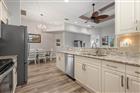 Rarely available opportunity to own a spacious three-bedroom (one of which doubles as an office) home with a two-car garage in a private enclave of just 33 residences, ideally located near everything Venice has to offer. This thoughtfully designed split floor plan provides privacy for owners and guests; while soaring 12-to-14-foot ceilings, elegant tray details, and arched architectural openings create a bright, open atmosphere throughout. Premium vinyl plank flooring flows seamlessly through the home, combining durability with a refined, modern look. The well-appointed kitchen features granite countertops, 42-inch upper cabinetry, a breakfast bar, and generous storage. Plantation shutters and substantial baseboards add a finished, upscale feel. Expansive triple sliding glass doors from the Great Room and double sliders from the primary bedroom open to a screened lanai suitable for dining or leisure, and overlooking a nicely landscaped private setting, Additional highlights include close proximity to the community pool and convenient access to Venice beaches, golf, dining, shopping, and vibrant downtown amenities.