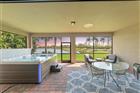 This rare Tangerly Oak model offers an exceptional opportunity to own a thoughtfully upgraded and lightly lived-in home that truly stands apart. With 2, 757 square feet of living space - larger than the typical one-story Pinnacle model—this residence delivers both added space and enhanced functionality. Unlike most Pinnacle layouts, this home features four generously sized bedrooms, including a desirable second bedroom with its own private en suite bath and a large walk-in closet, perfect for guests or multi generational living. From the moment you enter, you’ll notice upscale design elements throughout, including 8-foot interior doors, higher baseboards, and tile flooring that flows seamlessly throughout the entire home. The spacious eat-in kitchen is designed for both everyday living and entertaining, offering abundant cabinetry, ample storage, and plenty of room to gather. A true highlight of the home is the one-of-a-kind wall of four sliding glass doors spanning over 15 feet, opening completely to the extended lanai for seamless indoor-outdoor living. The oversized corner lot provides exceptional privacy along with expansive, long water views, all with a sought-after southern exposure that fills the home with natural light—especially during the winter months. Step outside to your own private retreat, featuring a premium Hot Spring Prism seven-person hot tub installed in 2020. Designed for a full-body hydrotherapy experience, it includes 73 jets powered by three pumps, a deeply relaxing lounger seat, a powerful footwell jet, a freshwater salt system, multi color lighting, and a backlit waterfall for added ambiance—all offering luxury without the maintenance of a full pool. Set on an expansive 9, 788 square foot executive homesite, the property also benefits from a large berm that enhances privacy and tranquility. Additional features include hurricane impact glass windows and doors throughout, including the quadruple sliders, a four-foot extended garage, and a large laundry room with plenty of space for storage and functionality. Lovingly maintained by its original owners and used only seasonally for approximately two months per year, this home has never been rented and remains in exceptional condition. Ideally located just a short walk from the impressive 14, 000 square foot Resort Center, 11, 000 square foot Event Center, multiple pools, and an array of world-class amenities, this home offers the perfect blend of luxury, comfort, and convenience.