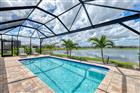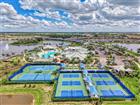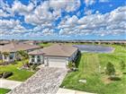 Enjoy resort style living in the highly sought after 55+ Del Webb at Bay View community. This 2024 built popular Mystique floor is situated on a premium water lot with sweeping lake views and offers stunning curb appeal. Exterior upgrades include tropical landscaping, flower bed curbing with ornamental rock garden around the entire perimeter, and industrial quality low voltage landscaping lighting. The driveway was also widened on each side. The oversized lanai off the back offers ample space to relax and unwind, and the current owner installed an after-market custom pool. The heated saltwater pool includes a pebble tec interior, beautiful decorative pavers, and a clear view screen to enjoy an unobstructed view of the water. The home was constructed with HURRICANE IMPACT GLASS and DOORS giving you peace of mind, and the floor plan was modified to include 3 bedrooms plus a den/office. Inside you will find a lavishly upgraded interior as you step through the glass front door. A welcoming foyer is adorned with luxury vinyl plank floors that run throughout the main living spaces, and you will appreciate other upgrades such as 8-foot doors, tray ceilings, and designer light fixtures and fans that can be found throughout. The kitchen was modified at the time of construction to the built-in gourmet package and features upgraded cabinetry with dovetail constructed drawers, soft close doors and drawers throughout, built-in stainless steel appliances with upgraded refrigerator, decorative backsplash with quartz countertops, a large single bowl granite sink, and under cabinet lighting. There is also a generous sized pantry for extra storage. The large living room is flooded with light and enjoys lake views from every angle, and the dining area is the perfect place to throw a lavish dinner party or enjoy a quiet low-key meal at home. The primary suite is sure to impress with a custom built-in closet, and an en suite spa inspired bathroom with large walk-in shower and dual sink vanity with extra storage. Enjoy the lake view right from the comfort of your bed on those lazy mornings. Back at the front of the house just off the foyer, you will find a light filled guest bedroom and a second full bathroom that was upgraded with tile to the ceiling and beautiful quartz countertops. On the opposite side of the foyer, you will find the third bedroom making each bedroom in the home absolutely private. In addition to the 3 bedrooms there is a den/office with double door entry that has a built-in desk accented with under cabinet lighting that was custom designed and installed. There is a large laundry room with extra built-ins with folding station and a luxury washer and dryer package. The garage was finished with an epoxy floor and tons of built-in shelving for staying organized, and there is even a 50 AMP generator plug hook up for a back feed generator should you need it. Enjoy world class amenities that include the 22, 562 sf Driftwood Clubhouse, a heated resort style pool, state of the art fitness center, tennis and pickleball courts, bocce ball, event lawn and amphitheater, dog park, fire pit, community garden, demo kitchen and craft room, and tons of walking paths. The community includes a full-time lifestyle director and a guard gated entry. With the onsite restaurant The Sailfish Bar and Grille, you will feel like you are always on vacation. Enjoy maintenance free living with lawn maintenance included in your HOA fee as well as cable and internet.