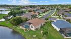 A beautiful lakefront home on a quiet cul-de-sac in the desirable gated community of Sabal Trace Single Family. As you enter the home through the double front doors, the 12-foot high ceilings of the foyer with its crown molding and inset mirrored wall welcomes you in. To the left of the foyer is the formal dining room, also, with 12foot ceilings with crown molding and arched entrance from the foyer and the kitchen. The foyer opens into the open concept of living room, dinette and kitchen. The open area has cathedral ceilings, chair rail throughout and ceramic tile in the entire home. No carpet. The living room and dinette open onto the lanai by way of double corner pocket sliders allowing wonderful views and gentle breezes. The living room also has a double window allowing natural light and views. The kitchen has Corian countertops, tiled back splash, breakfast bar, closet pantry, newer stainless steel appliances and ample workspace for the chef in the family. The spacious master bedroom has cathedral ceilings, a walk-in and a double door closet and a double slider door that pockets out of the way for views and access to the lanai, pool area and the lake. The master bedroom has an en suite master bath. The master bath has a double sink vanity with a dressing table., walk-in shower and a jetted soaking tub. The split floor plan offers two additional bedrooms and bathroom. The second bedroom has a double door closet. the third bedroom has double entrance doors, cathedral ceiling, double window that offers natural light and views of the lake and has a double slider that pockets out of the way with access to the lanai and pool area. The guest bathroom has a single sink vanity and a full walk-in shower. The home has laundry room off of the kitchen with full size washer and dryer as well as a sink and cabinet. The home has a 2-car garage with an additional side door for easy entrance. The focal point of the home is not just the oversized lot at the end of the quiet cul-de-sac but the lanai, pool and panoramic views of the lake. The lanai has a covered area that is 9x16 for enjoying your morning coffee as the sun rises or for relaxing for the afternoon wine and cheese. The lanai offers a screened area 32x24 with heated pool with spa and a decorative rock formation enjoying the FL lifestyle. The lanai also has a utility closet for all of your water toys and floats. All of these plus wide picturesque lake views. The property has lake frontage of 145 feet. The property has mature landscaping both for beauty and privacy. The community is located close to shopping, restaurants, golf courses, local beaches, world class fishing and area attractions. Who could ask for more? h