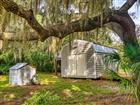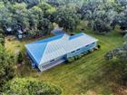 Country living meets modern convenience in this serene wooded retreat built in 2021, featuring 3 bedrooms and 2 baths. Custom from top to bottom with inspired touches throughout, this home offers a desirable open split-bedroom floor plan with cozy living areas paved in luxury vinyl wood-style flooring. The inviting living room centers around a glowing electric fireplace and provides access to both the front and back yards, while a formal dining area connects seamlessly to the well-appointed kitchen at the heart of the home. The kitchen showcases stainless steel appliances, quartz countertops, and a charming breakfast nook, with a massive walk-in pantry just off to the side offering ample storage and direct access to the generous laundry room, complete with a linen closet and a built-in secure safe. The owner’s suite is a private retreat with a walk-in closet and an elegant ensuite bath featuring dual sinks set in quartz vanities and a spacious walk-in shower. This space also opens to the backyard, where an outdoor oasis awaits. Surrounded by mature native foliage, the covered patio overlooks a lush yard and a large detached shed/workshop equipped with electricity—perfect for a studio, gym, or hobby space. Built with concrete construction, impact windows, and a metal roof, this 2021 home is as efficient as it is inviting. Additional highlights include a whole-house propane generator for peace of mind and over three acres of land zoned RA, allowing for both residential use and livestock. There’s plenty of room to park your boat, RV, or golf cart in addition to the attached two-car garage. Experience the feeling of a secluded ranch while remaining close to shopping, dining, the beach, and the river. This one is a must-see!