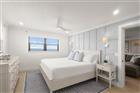 This corner, oceanfront 2-bedroom, 2-bath condo offers an exceptional blend of coastal character and contemporary comfort and is located in a short-term rental–approved zone with upcoming bookings already in place. Fully remodeled from top to bottom, including updated electrical, the home welcomes you with a bright, open living space where soothing neutral tones, natural textures, and expansive ocean views set a calm, inviting tone. The spacious living area is ideal for unwinding while taking in the sights and sounds of the waves, or stepping onto the private balcony to enjoy unforgettable sunsets and dolphin sightings. The kitchen is both stylish and functional, featuring modern cabinetry, stainless steel appliances, and a large island well suited for casual meals or entertaining. Just beyond, the dining area showcases warm wood accents and woven pendant lighting, creating a relaxed coastal ambiance perfect for gathering after a day by the water. The primary bedroom serves as a serene retreat, with ocean views from every window, abundant natural light from its corner positioning, and the added privacy of a top-floor location. A cozy reading nook and a private ensuite bath with a glass-enclosed shower and contemporary finishes complete the space. The second bedroom is thoughtfully arranged to accommodate guests with ease, offering built-in bunk beds with storage steps and a queen bed below, maximizing both comfort and rental potential. Both bathrooms feature spa-inspired finishes, including bright tile, illuminated mirrors, and refined fixtures. Additional conveniences include a full-size washer and dryer, a dedicated storage unit located on the same floor, and negotiable furnishings and contents. With its seamless combination of style, functionality, and sweeping ocean views, this property presents an outstanding opportunity for a personal getaway or income-producing investment, supported by an established rental history and upcoming reservations already secured.