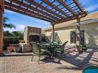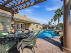 Exceptional 4 bedroom, 3 bath pool home located within a sought-after gated community offering resort-style amenities. A grand entrance sets the tone, opening to thoughtfully designed living spaces including a private office and a formal dining room, ideal for both everyday living and entertaining. The main living area is highlighted by architectural crown molding and a gas fireplace, creating a warm and inviting focal point. The spacious kitchen features stainless steel appliances, abundant cabinetry, and a sunny eat-in area, seamlessly connecting to the living space for effortless flow. Step outside to your private backyard retreat featuring an inground pool and spa with serene water views. The outdoor living area is complete with a fully equipped outdoor kitchen and a gas fireplace, making it perfect for year-round entertaining and relaxed evenings by the pool. The expansive primary suite offers a peaceful retreat with a sitting area and spa-like bath. An additional ensuite bedroom with direct pool bath access provides excellent flexibility for guests or multigenerational living. Oversized 3 car garage is perfect for add'l storage and all the toys. Residents enjoy access to outstanding community amenities, including golf, dining, tennis, and pickleball, delivering a true country-club lifestyle in an elegant and comfortable setting.