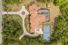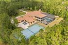 Welcome to a truly unparalleled luxury estate, nestled on 5 acres of serene privacy. This custom-built masterpiece, completed in 2009, boasts an impressive 11, 138 square feet of meticulously designed living space, where every detail has been thoughtfully curated for the discerning homeowner. As you enter through the private gate, you are greeted by a stunning family room featuring a handcrafted stone gas fireplace and soaring ceilings that create an inviting atmosphere. The elegant curving marble staircase, adorned with a magnificent Swarovski crystal chandelier, sets the tone for the opulence that awaits. This estate offers 5 spacious bedrooms, each with large walk-in closets and en-suite bathrooms, ensuring comfort and privacy for family and guests alike. The main living areas are enhanced by exquisite woodwork, including a gorgeous dining room and a living room that seamlessly connects to the outdoor oasis through sliding glass doors that open at the corner, perfect for entertaining. Indulge in the ultimate entertainment experience in the media room, complete with luxurious seating and a stunning chandelier commissioned from Tiffany's in New York. The primary suite is a true retreat, featuring a cozy sitting area and an expansive closet. Additional highlights include a gym with a steam room, an office/study/library, and an upstairs game room that overlooks a spacious covered balcony. The outdoor amenities are equally impressive, featuring a large pool with a spa, ample undercover seating, an outdoor kitchen, and tennis courts, all surrounded by lush landscaping and majestic oak trees. The estate also includes a wine cellar, a wet bar with custom woodwork, and coffered ceilings adorned with unique prints. With a 4-car side garage and an attention to detail that is truly one of a kind, this estate is unlike anything you have ever seen. Experience luxury living at its finest—schedule your private tour today and discover the extraordinary lifestyle that awaits you.