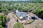 Welcome to beautiful Happy Trails. A gated community. This unique property combines rural living and modern living just minutes from Disney, This 8.7 acre property holds a 4 Bedroom, 2 bathroom home, with a Master suite and oversized walking closet. The kitchen features large windows with abundant natural light, facing the beauty of nature, a perfect place to enjoy your morning coffee. The living and dining room reflect a spacious open space, ideal for gathering friends and family. There is a small pond on the property, a 12x50 workshop/shed and an additional garden shed. This property has a separate private entrance thru beautiful mature landscape, your own private entrance to this heavenly property. New roof was added in 2024, New Ac in 2019 and new water heater in 2024. Out of the 8.7 acres, 3 acres are fenced in. Farm animals are welcome. Bring all your toys, such as trucks, Four wheelers, boats, etc (no parking issues) Happy Trails has an E-5 designation. Motivated seller!