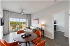This stunning, modern, fully furnished 2-bedroom, 2-bathroom condo is situated in the highly sought-after Melia Orlando Suite Hotel in Celebration. It has a lovely 'boutique' feel to it. Inside, the condo includes a comfortable living room and a kitchen equipped with elegant stainless steel appliances, designed for both style and functionality. The kitchen is nicely equipped with a cooktop, dishwasher, full-size microwave and refrigerator, stone countertops, and tile flooring. Fall in love with this charming and contemporary condo-hotel. The primary bedroom is inviting and includes a bathroom with both a tub and a separate glass shower stall. The living area has a small dining table, sofa sleeper and sliding glass doors leading to the balcony. At the heart of the Melia is the most amazing pool with a 360-degree vanishing edge. The Melia offers an impressive array of amenities, including a community resort pool a poolside restaurant and bar, a gift shop, and executive conference rooms. Additional features include a checking desk for convenience, a dog walking park, a beach volleyball court, a mini soccer/ football pitch, and a picnic area. Located just minutes away from major theme parks such as Disney, Universal Studios, and Sea World, this property offers an ideal location. The Melia provides private transportation to the theme parks, and guests can also request a complimentary day pass to the Celebration Health gym and spa, which is conveniently located across the street. The condo features a spacious, modern floor plan, complete with two private balconies that spectacular views of Celebration and the surrounding areas. This condo is a must-see for those looking to combine personal enjoyment with the benefits of hotel management. The hotel is renowned for its excellent customer service and maintenance standards. All info is intended to be accurate; it is the buyer and the buyer's agent responsibility to verify all details within the resort.