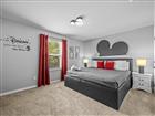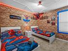 Under contract-accepting backup offers. Do not miss this Fully Furnished Vacation home with amazing themed rooms and Gaming area. Built in 2022 this like new home has been professionally decorated with multiple themed rooms and tastefully decorated adult bedrooms. Mini split air conditioner in the garage converted with game table and game console make this space perfect for keeping guests entertained. There's a fully equipped kitchen for all your cooking needs. Kitchen has quartz countertops, tiled backsplash and 42 in cabinets. The breakfast bar and oversized island is complete with stools and is ideal for a casual quick meal in the morning to energize the start of your day. For a more formal meal, especially for the holidays, there is a formal dining area. The dual living area provides plenty of seating upstairs in the loft or downstairs in the living area to watch a show or sports game after a long day of adventures around the Orlando. The triple sliding doors open to the patio can be accessed via the living area, where you can relax under the covered lanai or take a dip in the heated pool or spa. Enclosed lanai overlooks conservation area for privacy. There is also a restroom off the pool area. There are 2 master suites with king-size beds, one downstairs and the other upstairs, with en-suite bathrooms, each with dual sinks. The little ones will love the Spiderman, Little Mermaid and Harry Potter inspired bedrooms. Enjoy unlimited access to the state-of-the-art 13, 000 sq.ft clubhouse, resort pool and water park, a Surf Simulator, well-equipped fitness room, volleyball courts, soccer field, Little tikes playground, and Teen video and recreational area. There is also a poolside cafe where you can enjoy food and drinks even frozen cocktails! Solara is close to Theme parks, Restaurants, Sunset walk, theaters and more. Don’t miss your chance to view this well appointed vacation home ready to rent!