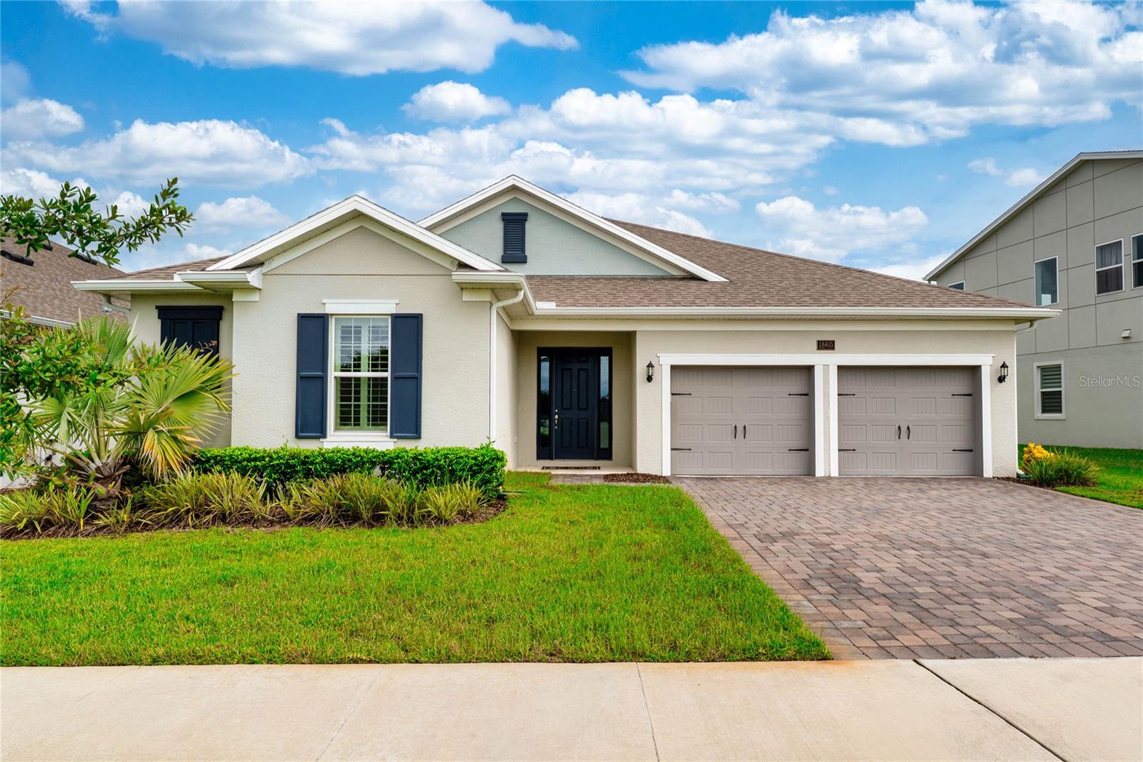 Live the lakefront dream in this impeccably upgraded, single-story stunner. Built in 2023 and zoned for Laureate Park Elementary, this home blends elegance and ease with panoramic water views and a private saltwater pool just steps from your covered patio. Inside, you'll find upgraded tile floors throughout, plantation shutters on every window, and custom electric fireplaces in both the living room and the primary suite. The gourmet kitchen opens to a spacious living area with your private pool and waterfront views —perfect for work or play. The primary suite is a true retreat, featuring high-end custom closets and a spa-inspired bath with a soaking tub, glass shower, and dual vanities. Additional custom closets extend to the pantry and laundry room, offering thoughtful storage throughout. The garage is equally refined, with an epoxy floor and built-in organization. A dedicated office provides flexibility and can easily convert into a fourth bedroom if desired. This is more than a home — it’s a lifestyle upgrade. Minutes from Lake Nona Medical City, dining, and major highways, yet tucked into a peaceful lakeside setting. This home is available immediately.