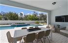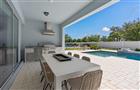 Under Construction. Step into the Stardom Model Home! Originally a model home, this stunning one-story 3-bedroom, 2.5-bathroom, an open flex room, and 3-car garage masterpiece boasts a pool and spa situated on a homesite with no rear neighbors, a privacy wall at the rear of the home, and black aluminum fencing–offering both privacy and beauty. The open concept living area flows effortlessly, combining the kitchen, café, and gathering room into one expansive space that feels airy and inviting. The gourmet kitchen is a true focal point, featuring KitchenAid appliances, including a natural gas cooktop, double oven, full-size refrigerator, and beverage fridge. Soft-close cabinetry, a wood canopy hood, herringbone tile backsplash, quartz countertops, and under-cabinet lighting add the perfect blend of style and convenience. Soaring tall ceilings, 8’ Cheyenne-style interior doors, crown molding, and a luxurious double tray ceiling elevate the entire area, adding a sense of grandeur while maintaining an intimate, welcoming atmosphere perfect for entertaining. The pocket sliding glass doors, which connect the living area to the covered lanai, flood the home with natural light, creating a bright, vibrant environment that brings the outdoors in. Step outside into your private outdoor retreat. This exceptional backyard features a fully appointed outdoor kitchen, an elegant covered lanai, a pristine swimming pool, and a luxurious spa. The private Owner’s Suite, located at the back corner of the home for ultimate privacy, offers a tranquil retreat with a spa-inspired en suite bathroom, oversized walk-in closet, linen closet, zero-entry walk-in shower with built-in bench, and enclosed toilet. The Stardom also features two spare bedrooms located in the opposite back corner of the home, allowing privacy for everyone, and an open flex room at the front of the home- perfect for a sitting room or home office. The laundry room makes daily tasks a breeze, offering the convenience of built-in cabinetry, a quartz trimmed utility sink, and brand-new Whirlpool washer and dryer. The 3-car garage complete with an epoxy finished floor provides plenty of space for vehicles, storage, or hobbies. Don't miss out on your chance to own one of the best homes in the neighborhood! Schedule a tour today!