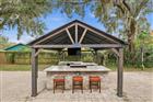 This home in the historic Sanford Mayfair area is made for your next outdoor party! The amazing 1080 square foot covered and screened patio has enough room for all the outdoor furniture: dining, relaxing, ping pong/pool table, kid's play equipment, spa, even a potting bench. Three giant industrial-style ceiling fans efficiently cool the area even on the hottest of days. Outside the patio, a huge outdoor kitchen and bar area makes cooking and entertaining a breeze, and you can whip up s'mores over the open fire pit. All this with cohesive pavers connecting outdoor areas and providing extra parking for your additional vehicles behind the double gate. And if your guests want to watch the game alfresco, you can do that too! Plenty of room out here for the four legged friends as well where they will be safe behind fencing. Just off the patio is an ample family room accessible through French doors. Open plan living, dining, and kitchen are at the front of the home along with the split plan bedrooms. Both baths have been fully remodeled - master bath includes an overhead shower head and bidet. Additional features in the home are plentiful: tile, laminate, new ceiling fans, 2 inch blinds, new hardware, two car paver parking pad at the front of the home. An indoor laundry room includes a ton of storage. New roof was installed in 2022 as well as new windows in 2024. And the Sanford lifestyle will keep the party rolling. Just a short golf cart ride away from the Lake Monroe Riverwalk and the historic Sanford downtown, you can get to restaurants, pubs, shops, music and entertainment, biking/walking paths in minutes, not to mention a marina where you can launch or rent a slip for your boat. And no HOA! Come and imagine the game days waiting for you!