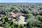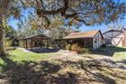 One or more photo(s) has been virtually staged. Welcome to this exceptional estate nestled on 1.88 serene acres, surrounded by majestic mature oak trees and offering the perfect blend of privacy, charm, and versatile living. This unique property features a 3-bedroom, 2.5-bath main home plus a fully equipped 1-bedroom, 1-bath in-law suite with its own entrance, driveway, and carport—ideal for multigenerational living, guests, or rental income. Inside the main residence, you’ll find a spacious great room with a dedicated dining area and a striking full-length brick wall with a wood-burning fireplace, creating a warm and inviting atmosphere. The kitchen offers excellent functionality with an island featuring seating, perfect for casual meals and entertaining. The primary bedroom retreat includes its own wood-burning fireplace and sliding doors leading directly to the lanai and pool, providing peaceful views and effortless indoor-outdoor living. The third bedroom includes a convenient half bath, making it ideal for guests or a home office. The in-law suite offers complete independence with a full kitchen, living room, laundry room, and private amenities—creating a true stand-alone residence perfect for extended family or supplemental income. The home has been thoughtfully maintained with major updates, including a new roof installed in 2022, two separate A/C units that are only a few years old, and two individual septic systems, each with its own drain field. Both septic systems were pumped just last month, offering peace of mind and added value for future owners. For hobbyists, car enthusiasts, or those in need of serious workspace, the property boasts an oversized detached 3ncar garage wired with electric—ideal for a workshop. Additionally, there is a 2nd car carport and two extra storage sheds, offering generous space for tools, equipment, or recreational gear. With its expansive grounds, multiple living spaces, and abundant storage, this property is a rare find offering comfort, flexibility, and room to grow.