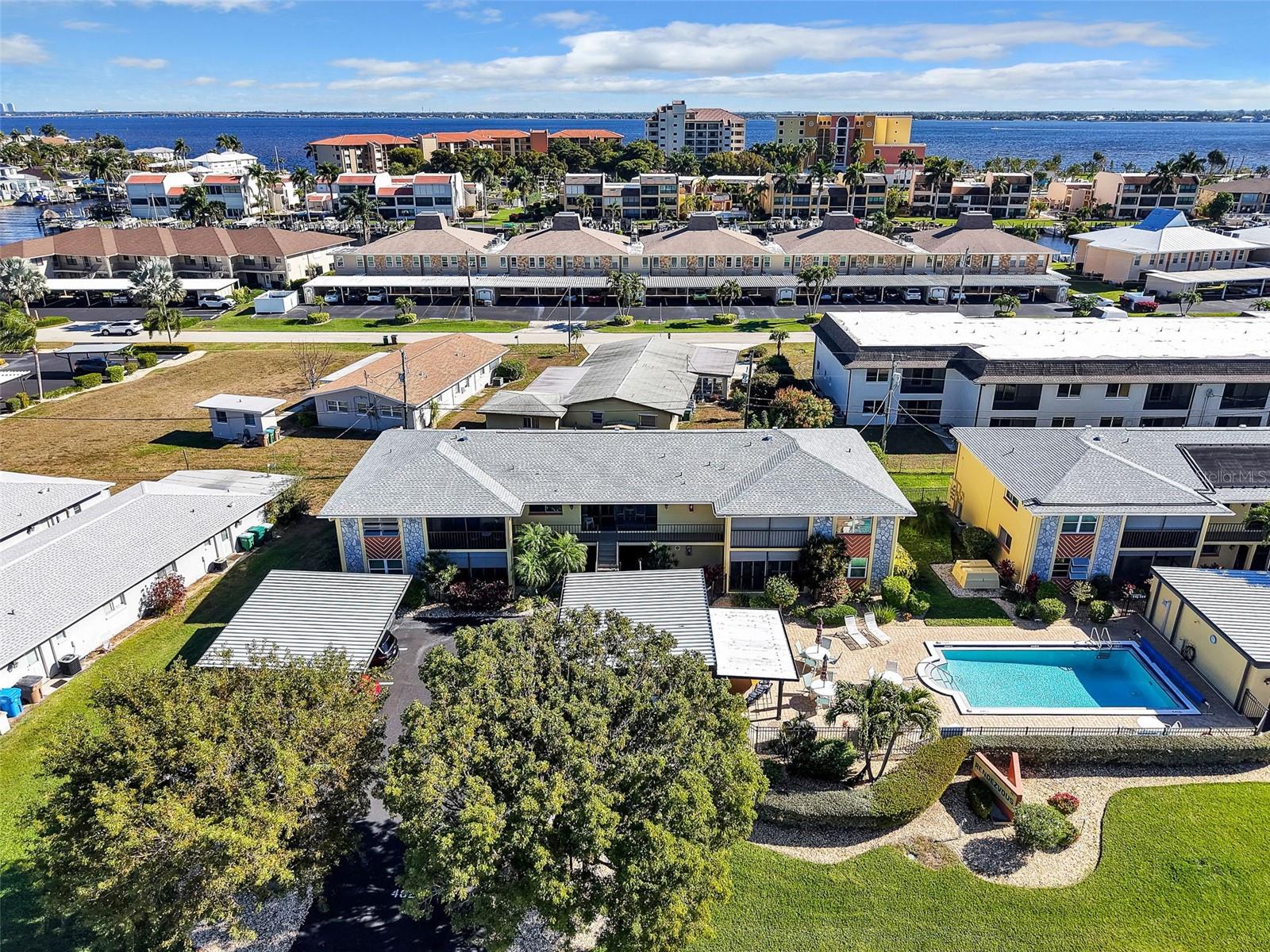 Welcome to Cape Coral, home of over 400 miles of canals, a major boating and waterfront community, and the largest city between Miami and Tampa. You will find numerous parks, restaurants, stores, and water activities. This neighborhood is located on the Caloosahatchee River with Jaycee Riverfront Park getting a makeover to be completed by April. The drive down Beach Parkway is lined with palm trees leading you to the heart of the community at Rendezvous Condos. This second floor condo has access to heated outdoor pool and patio bar with dining area. Includes 1 parking space and 4 parking spaces available for quests. Condo has been updated, marble tile wall in kitchen, quartz counter tops, new tile flooring, stainless appliances. Two bedrooms and two bathrooms. Enclosed balcony.