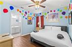 Turnkey, high performing luxury vacation rental in the sought-after Solterra Resort, offering a proven rental history with bookings secured through 2026. Built for short-term rental success, this home delivers strong guest demand through an impressive collection of immersive themed spaces, including Harry Potter, Disney’s UP, Stitch, How to Train Your Dragon, Disney Princess, Broadway, Marvel, Animal Kingdom, Sugar Rush (Wreck It Ralph) and additional themed bedrooms designed to encourage repeat stays. A Star Wars themed entertainment loft and a pirate and cave style private theater with hidden ship arcade elevate the guest experience and support premium rental performance. The open concept layout accommodates large groups and flows to a spacious covered lanai with private pool and spa, a highly desirable feature for vacation guests. Located minutes from Orlando’s world class attractions, the property is within Solterra, a gated destination resort with 24 hour manned security, offering a resort style pool with lazy river, fitness center, playgrounds, sports courts, and an on site café. Cable TV, high speed internet, and lawn maintenance are included. Ideal for buyers seeking a vacation focused property that generates rental revenue with the flexibility for personal use when not occupied.