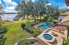 Experience true lakefront living on the famed Butler Chain of Lakes. This exceptional custom home offers 137 feet of pristine shoreline and sits on nearly one acre of high, dry land with sweeping panoramic water views and nightly Disney fireworks. Arrive via a circular paved drive framed by mature oaks and step onto the covered porch through an impressive 8 inch solid cedar entry door with artisan leaded glass. Inside, the great room makes an immediate statement with soaring 23’ cathedral ceilings and a striking Tennessee river rock fireplace. Entertain in the showstopping formal dining room, where oversized picture windows perfectly frame the lake. Designed for everyday comfort, the majority of the living space including all bedrooms is located on the main level. The chef’s kitchen is fully equipped with solid wood cabinetry, granite countertops, Sub-Zero refrigerator, Thermador gas cooktop with exhaust, Bosch double ovens, wet bar, walk-in pantry, and a sunlit breakfast area with spectacular water views. The spacious primary suite is a private retreat with its own screened lanai and a spa-inspired bath featuring a shower, jetted tub, dual vanities, and three walk-in closets. Generous secondary bedrooms offer ample closet space and well appointed baths, including a steam shower. Outdoors is where this home truly shines. Enjoy mature landscaping and colorful gardens, plus a motorized screened lanai with a chef-worthy summer kitchen pizza oven, prep area, grill, refrigerator, and TV alongside the pool, heated spa, and gas firepit. The desirable southern exposure delivers refreshing lake breezes and comfortable outdoor living without harsh afternoon sun. The custom floor plan maximizes lake views throughout, and the partially enclosed dock is a rare find grandfathered in, with a boat lift and side jet-ski lift. Additional highlights include newer doors and windows and a tile roof. The Lakes neighborhood also offers a community boat ramp and tennis courts. Enjoy Windermere living on the Butler Chain without the traffic, just minutes from major roads, top schools, shopping, and dining. This rare, well-built lakefront home is ready to welcome you. Be sure to explore the virtual tours.