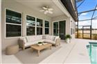 One or more photo(s) has been virtually staged. This beautifully maintained residence offers a bright, open-concept layout designed to accommodate both everyday living and entertaining. From the moment you enter, neutral finishes, recessed lighting, and abundant natural light create a polished, welcoming atmosphere throughout. The main living areas flow seamlessly into a kitchen with a large center island and ample prep space, complemented by stone counters, stainless appliances, and generous cabinetry—ideal for gatherings or casual dining. The spacious primary suite with an en suite bath provides comfort and privacy, featuring a primary bath with dual vanities, a soaking tub, and a separate shower, along with a private water closet. Secondary bedrooms are well-proportioned and thoughtfully positioned. A dedicated laundry room with built-in cabinetry enhances everyday functionality. Outdoors, a covered lanai and screened-in pool create an easy transition from interior spaces to outdoor living, offering a relaxing setting for enjoying the Florida lifestyle. The exterior was freshly painted in 2025, adding to the home’s curb appeal and move-in-ready condition. Situated on a desirable corner lot of nearly a quarter acre, this home offers added space and privacy while remaining conveniently located with easy access to major highways, Orlando International Airport, shopping, dining, and everyday amenities.
