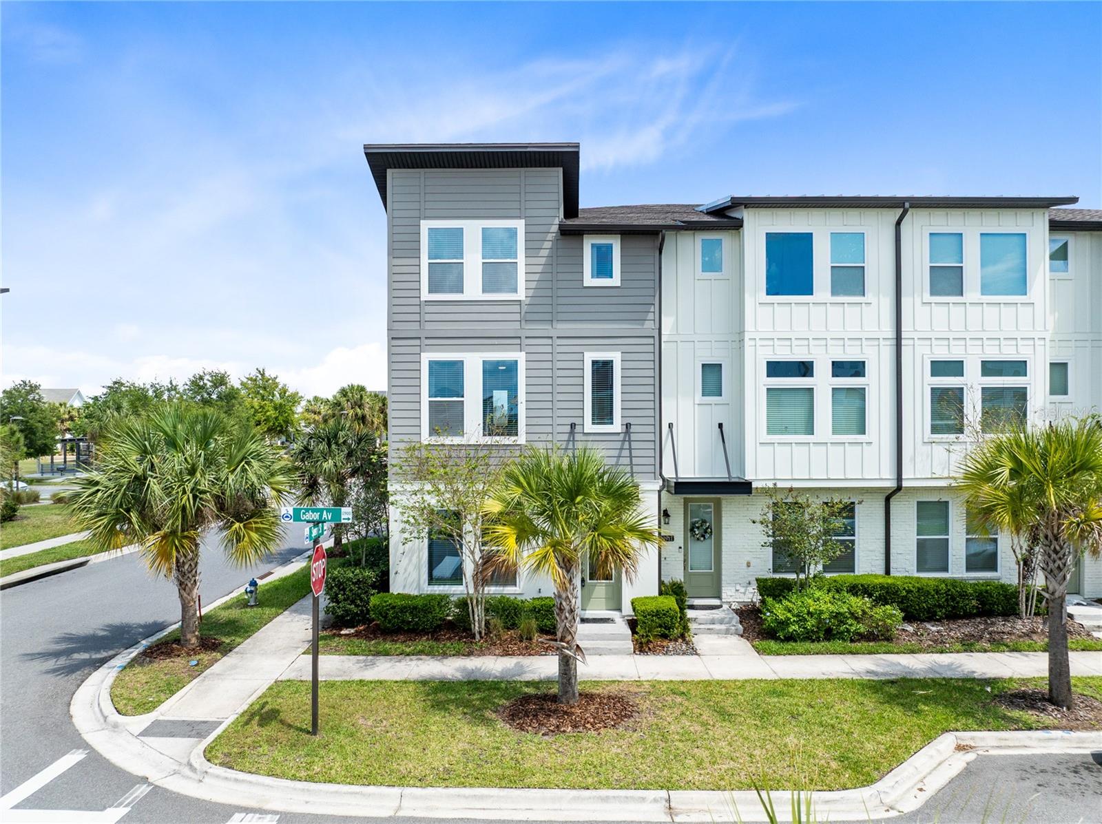 Experience elevated living in this Ashton Woods Kilmer model townhome in Laureate Park, Lake Nona. This rare corner unit is filled with natural light and offers 3 bedrooms and 3.5 baths across three thoughtfully designed levels. The first floor features a private guest suite with a full bath and walk in closet, perfect for visitors, a home office, or fitness space. Upstairs, the second level opens to a bright and airy main living area anchored by a designer kitchen with quartz countertops, sleek cabinetry, stainless steel appliances, convection oven, glass cooktop, vented hood, and microwave. Luxury vinyl and upgraded ceramic tile flooring add to the clean, model like feel. On the third floor, the spacious primary suite offers a walk in closet and an upgraded bath with double vanities. An additional bedroom with its own private bath provides comfort and privacy for family or guests. Enjoy peaceful park views from the covered rear balcony and tranquil water views from the second and third floors. The corner location enhances both privacy and natural light. Laureate Park isn’t just a neighborhood it’s a vibrant lifestyle. Enjoy the Aquatic Center, resort style pools, LP Fit gym, tennis courts, parks, community garden, dog park, and miles of trails. Located in prime Lake Nona, minutes from Medical City, Nemours, the VA hospital, dining, shopping, major highways, and Orlando International Airport. This is low maintenance luxury in one of Lake Nona’s most sought after communities. Schedule your private tour today.