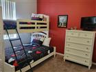 This fantastic primary residence or vacation home in the extremely popular short-term approved community of Calabay Parc. The well-appointed Cypress model features 4 bedrooms and 3 bathrooms, including 2 master suites with en-suite bathrooms— one with soaking tub and separate shower and other with a tub/shower combo. Two secondary bedrooms share the hall bathroom. The home is sold fully furnished and comes with all upgraded appliances. Enjoy the privacy of the east-facing, screened and covered lanai overlooking the pool and deck. The spacious kitchen with upgraded stainless appliances includes a generous dining area that features a bay window to the front yard. The garage features a pool table and foosball. Whether you're seeking a beloved family getaway or a permanent residence, this home’s prime location near Hwy 27 and Champions Gate offers easy access to theme parks, Margaritaville, shopping, restaurants and golf. The HOA dues include lawn care. Seller to replace roof prior to closing and roof warranty will transfer to the Buyer at closing.