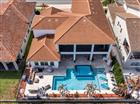 When only the BEST will do. Welcome to this stunning luxury home in the guard-gated golf community of Eagle Creek, located in the prestigious Lake Nona area of Orlando. Situated on one of the best lots with both golf and water views, this home has it all. Jones Homes' Fernwood II model offers spacious rooms, quality upgrades, high ceilings and lots of natural light. The open floor plan and seamless access to your outdoor paradise is a must-see feature. The large triple sliders open to a 39'x10' covered patio with remote screens, beautiful pool and heated 12-person spa, summer kitchen and outdoor stone bar with beverage refrigerators.