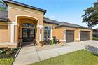 Under contract-accepting backup offers. This beautifully maintained 3-bedroom, 2-bath home delivers the ideal Florida lifestyle with timeless curb appeal, an inviting arched entry, and a three-car garage. Inside, you'll find a bright, open layout with neutral finishes, upgraded lighting, and spacious living areas designed for both everyday comfort and entertaining.The kitchen features white cabinetry, granite countertops, stainless appliances, and a designer tile backsplash, plus a large window overlooking the backyard retreat. The main living space is anchored by a striking fireplace and enhanced by a built-in bar/serving station. Step outside to your private oasis-- a screen-enclosed pool with paver deck and covered lanai with a warm wood ceiling, ceiling fans, and café lighting for year-round enjoyment. The primary suite impresses with a spa-inspired bath including a freestanding soaking tub, frameless glass shower, and an incredible custom walk-in closet A rare combination of space, style, and outdoor living.