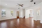 Under contract-accepting backup offers. Welcome to Golfview Villas, one of College Park’s rarely available townhome communities. Located at 3400 Golfview Blvd #A, this beautifully maintained Mediterranean-style residence places you directly across the street from the historic Dubsdread Golf Course and the beloved The Tap Room at Dubsdread. Opportunities to own in this intimate enclave are few and far between, making this a truly special offering in one of Orlando’s most sought-after neighborhoods. Step inside to discover a light-filled, open-concept floor plan with engineered hardwood flooring throughout, tile accents, crown molding, and 9-foot ceilings that create an elegant yet comfortable atmosphere. The spacious great room flows seamlessly into the kitchen, which features granite countertops, 42” wood cabinetry, and all appliances included, making it perfect for both everyday living and entertaining. A separate dining area adds versatility, while a private den/office with its own exterior entry offers an ideal work-from-home space or quiet retreat. The first floor also includes a powder room, laundry room, and additional under-stair storage. Upstairs, the luxurious primary suite is designed as a peaceful sanctuary, complete with a large walk-in closet and double doors that open to an impressive 18’ x 20’ rooftop terrace—perfect for relaxing evenings or entertaining under the Florida sky. The primary bathroom offers dual vanities, a soaking tub, and a private water closet. Two additional bedrooms share a bath, and the front bedroom features its own private balcony and walk-in closet. Build a wooden deck if you'd like! Additional highlights include a roof replaced just two years ago, fresh interior paint and updated flooring, along with solid two-story block construction. The oversized two-car garage provides ample storage and a rare advantage in townhome living—the garage separates the residences, meaning no shared walls and added privacy.
