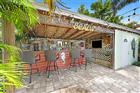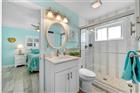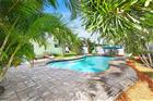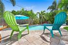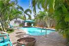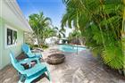 This beautifully renovated home is a short walk to the beach. The renovation and the upgrades are unrivaled. The stove, dryer, hot water heater, fire pit, barbecue grill in the tiki hut, and 400, 000 BTU pool heater are all run by natural gas. This home was gutted down to the studs. All electrical and plumbing, INCLUDING UNDERGROUND CAST IRON PIPES, have been upgraded and modernized. Plantation shutters enhance the impact windows throughout the home. Porcelain wood-like tile flows seamlessly through every room. The previously sunken living room has been filled with concrete, creating a single, smooth level for the entire family's living space. Quartzite countertops in the kitchen and bathrooms, along with white, soft-close cabinetry, provide a simple, modern look. Kitchen exhausts to the outside. Lighting is recessed throughout the main living space, and each room, including the main bathroom, has ceiling fans. All exterior doors have been replaced with impact doors. The roof and AC were replaced in 2018, and the pool was built in 2018. The backyard private oasis includes a tiki hut with a gas-fired barbecue and a fire pit. The bar has a 14-foot-long granite countertop and plenty of lighting for those long summer evenings. There is an H&C running water private shower outside as well, which is a nice addition to the spa environment. The saltwater pool has two built-in umbrella stands to keep the sun at bay and a creepy-crawly to keep it spotless with little effort. The west driveway and the entire back yard pathways are covered in pavers, and the entire yard is fenced. There is enough parking in both (east and west) driveways for at least 6 SUVs, and the undercover front seating patio enjoys the famous sea breeze year-round. There is NO garage. All interior building space is devoted to living the Beach Lifestyle. This home is Move-in ready, and a MUST SEE!